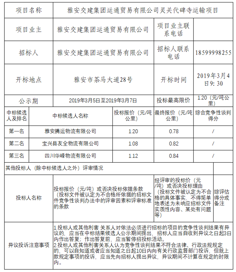 K8凯发建设集团运通贸易有限公司灵关代碑寺运输项目竞争性谈判结果公示