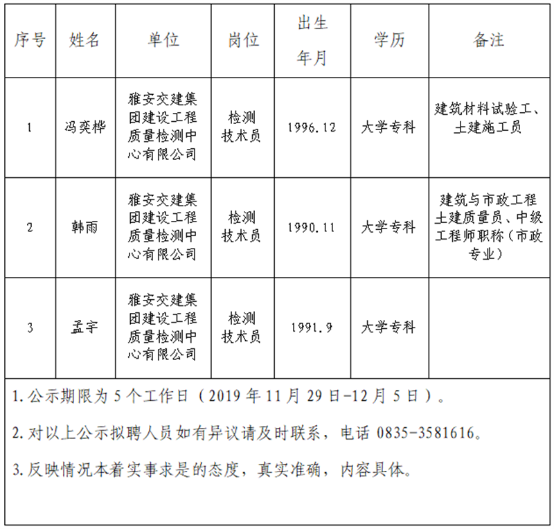 K8凯发建设集团子公司拟聘用人员公示(检测中心)