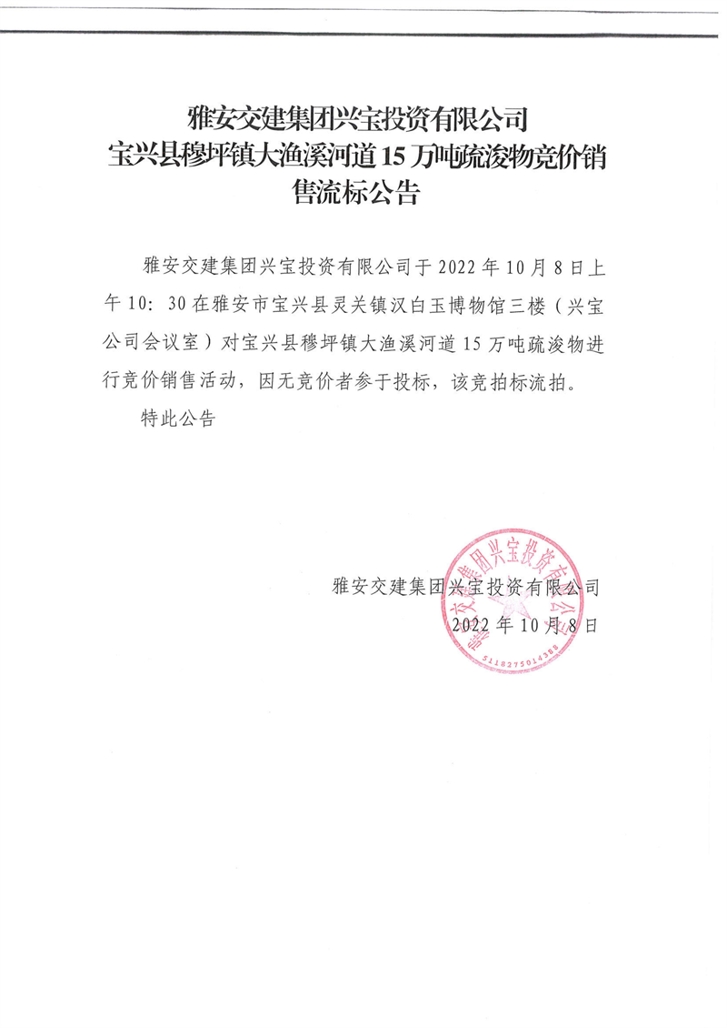 雅交建兴宝〔2022〕48号 关于调整砂石成品料销售价格的通知10.8
